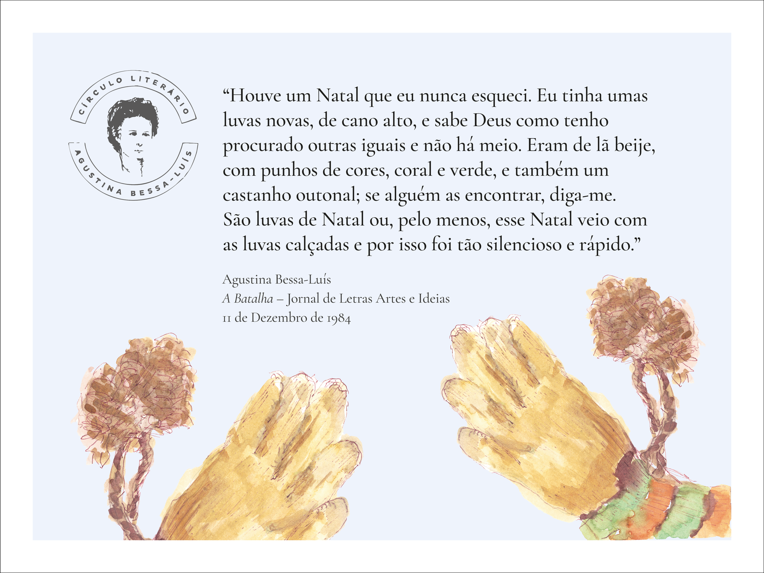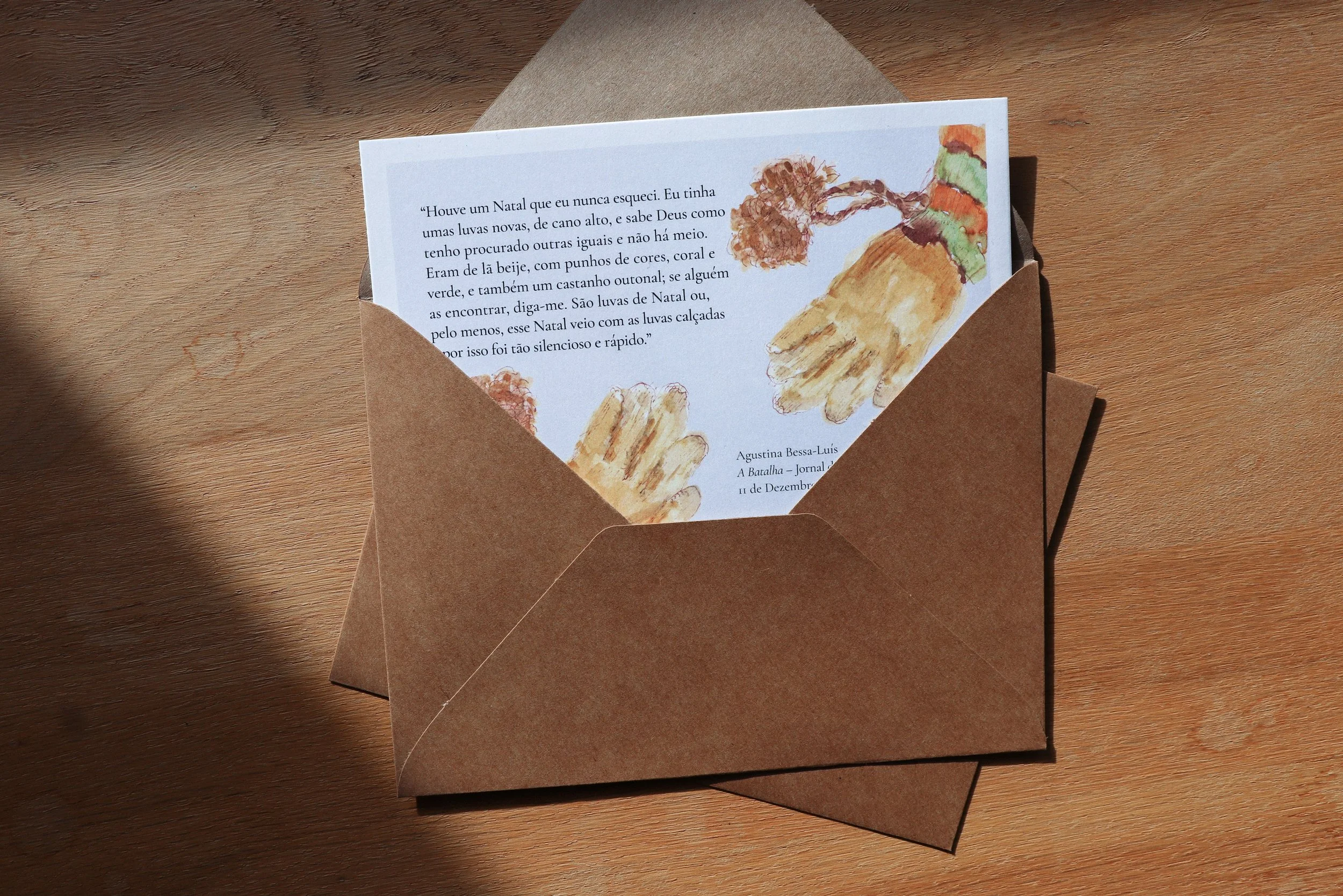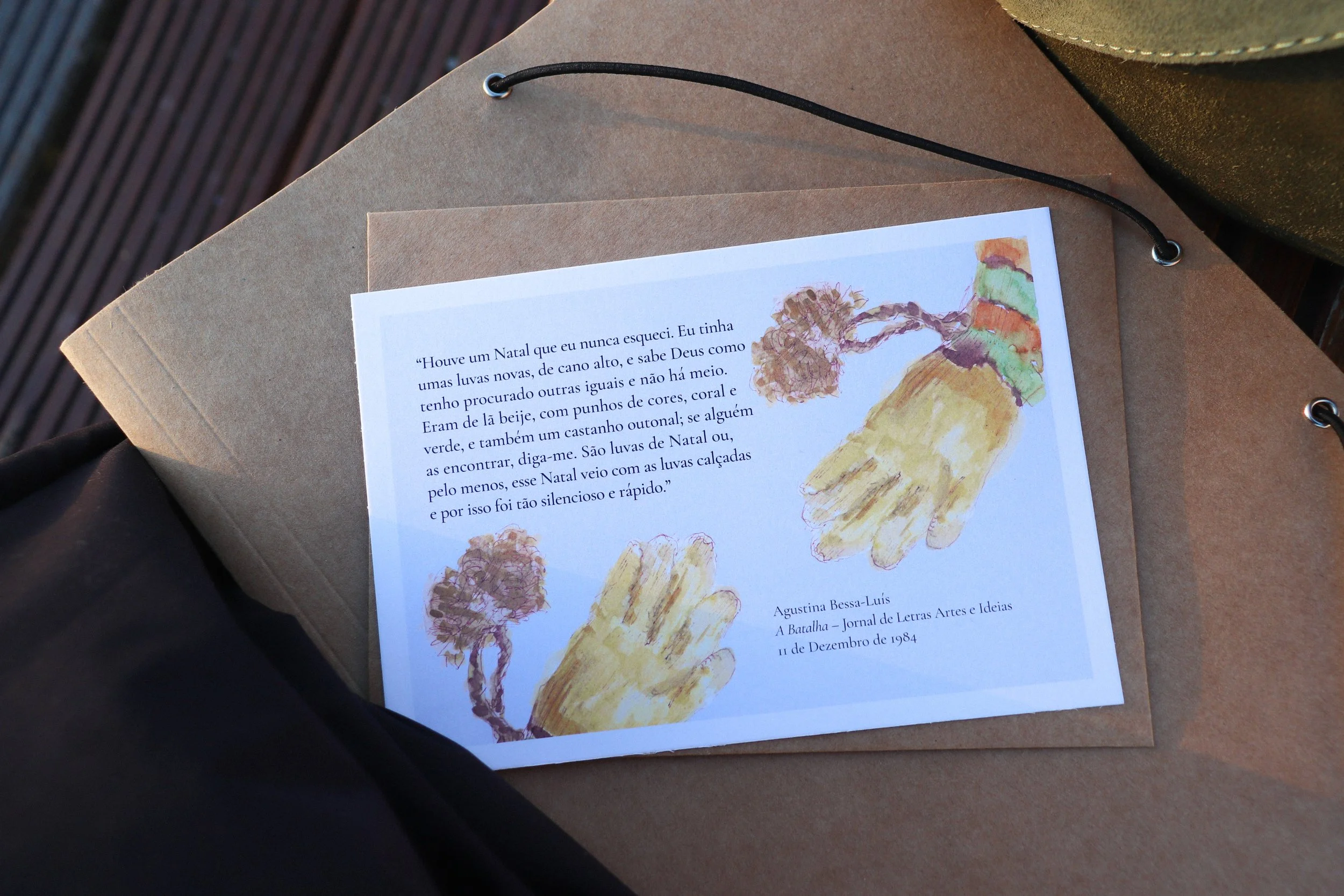 In December, I was commissioned to create a Christmas postcard featuring Mónica’s original hand-painted glove paired with a short text.